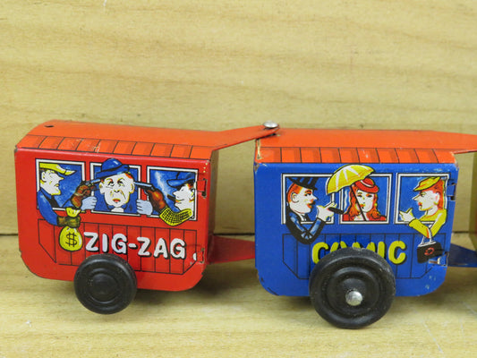 TRENO GIOCATTOLO IN LATTA CON CARICA A MOLLA ZIG ZAG COMIC EXPRESS MTU KOREA di