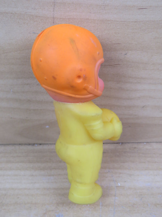 vecchia BAMBOLA IN GOMMA SQUITTENTE A FORMA DI GIOCATORE DI FOOTBALL AMERICANO