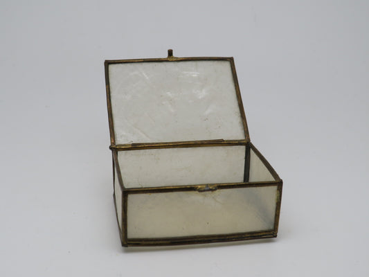 vecchio COFANETTO PORTAGIOIE IN MADREPERLA E OTTONE intarsiato vintage di