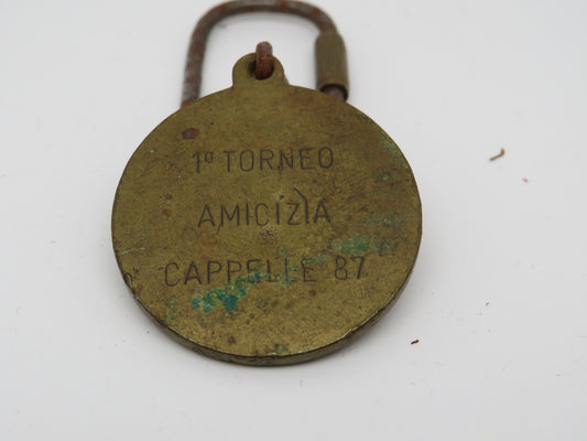 vecchio PORTACHIAVI MEDAGLIA 1 TORNEO AMICIZIA CAPPELLE 1987 vintage in metallo