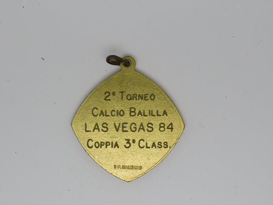 vecchia MEDAGLIA 2 TORNEO CALCIO BALILLA LAS VEGAS 1984 COPPIA 3 CLASSIFICATO