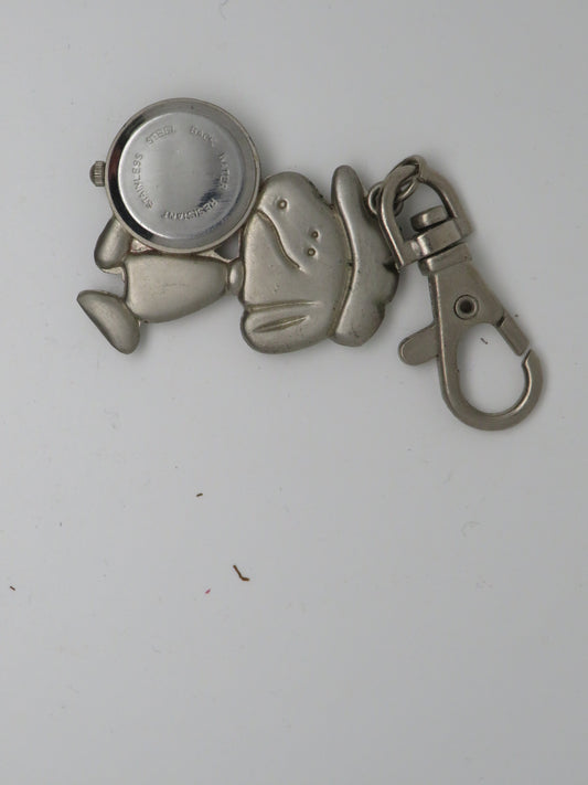 vecchio PORTACHIAVI SNOOPY CON OROLOGIO in metallo miniatura vintage di