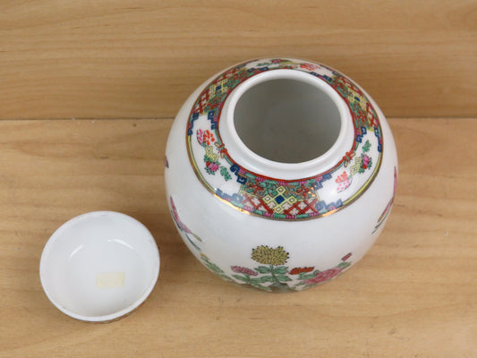 vecchio VASO POTICHE CINESE IN CERAMICA CON COPERCHIO decorato fiori dipinto di
