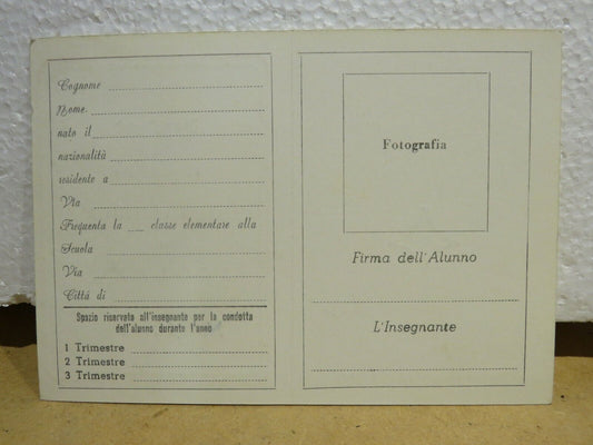vecchia TESSERA DELLA SCOLARO ANTG di SALERNO Scuola elementare d epoca vuota da
