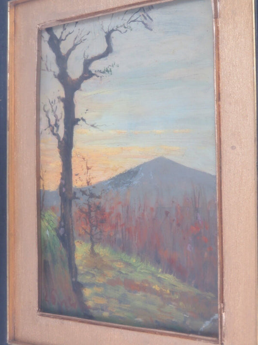 vecchio quadro dipinto a mano PAESAGGIO MONTANO INVERNALE Albero spoglio monte