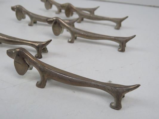 SET DI 6 POGGIACOLTELLI A FORMA DI BASSOTTO cane in metallo colore argento per