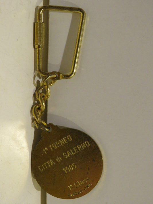 medaglia 1 TORNEO CITTA' DI SALERNO 1985 1 CLASS portachiavi colore oro premio