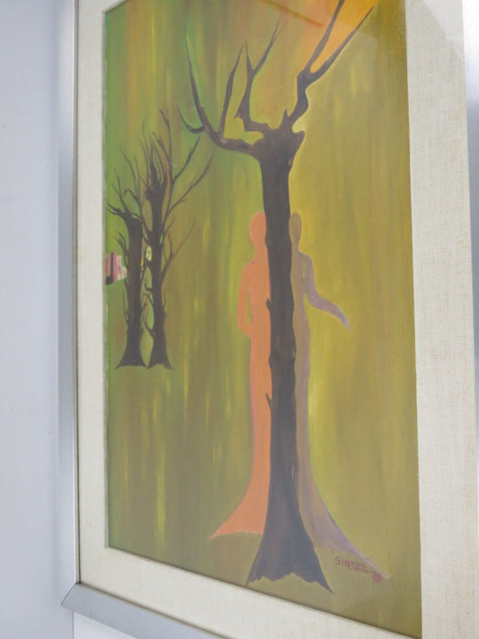 vecchio quadro dipinto in cornice di DONNE DIETRO ALBERO di Gindel astratta arte