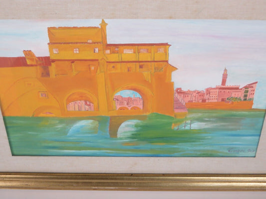 vecchio quadro dipinto in cornice CITTA SUL MARE VENEZIA da Gindel astratta arte
