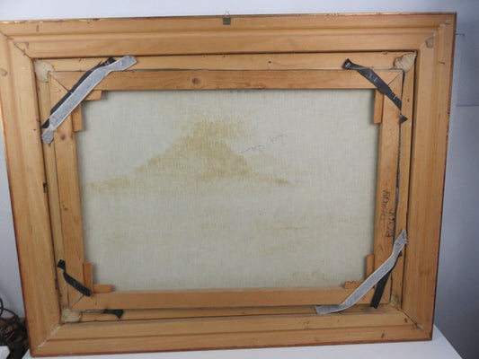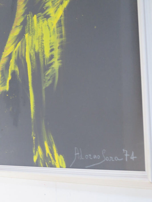 vecchio quadro dipinto a mano in cornice astratto SARA ADORNO APPUNTAMENTO 1974