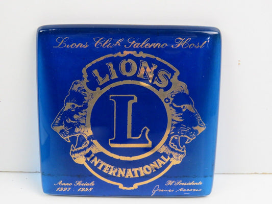 TROFEO LIONS CLUB SALERNO INTENRATIONAL HOST in vetro blu premio targa vintage