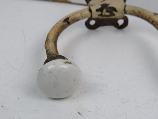 antico APPENDIABITI IN FERRO E PORCELLANA per cappello parete vintage ceramica