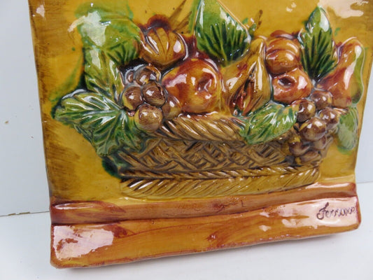 grande PIASTRELLA TERRACOTTA CRETA ceramica CESTO FRUTTA FERRARO Seminara a muro