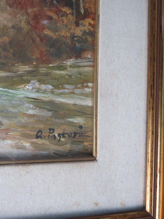 vecchio quadro dipinto a mano ALBERI NEL BOSCO firmato pittore G PASTORI autunno