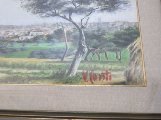 vecchio quadro dipinto a mano in cornice città toscana ? dalla campagna V CONTI