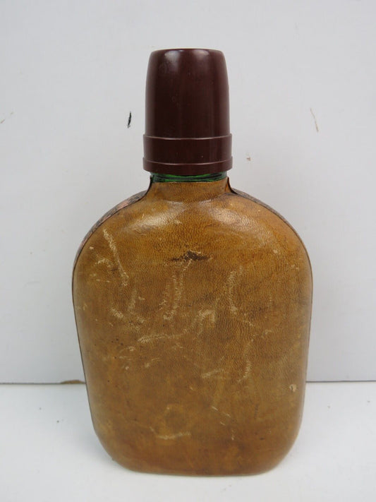 FIASCHETTA PER LIQUORE di vetro rivestita in pelle bottiglia vuota vintage da