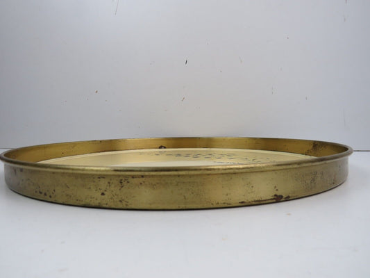 antico VASSOIO IN OTTONE SMALTATO metallo decorato a mano piatto vintage per