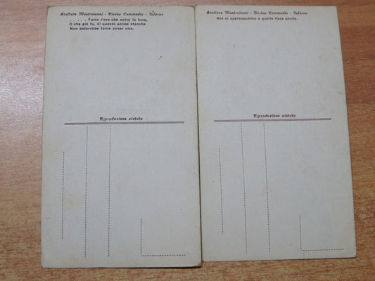 n. 2 vecchia cartolina serie Sculture Mastroianni DIVINA COMMEDIA INFERNO Dante