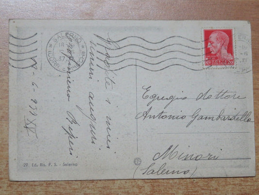 vecchia cartolina SALERNO PANORAMA del porto epoca fascista 1937 a Minori barche