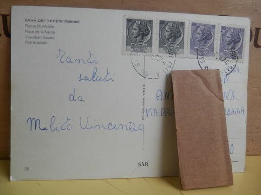 vecchia cartolina fotografia d'epoca veduta CAVA DEI TIRRENI PIAZZA MUNICIPIO DI
